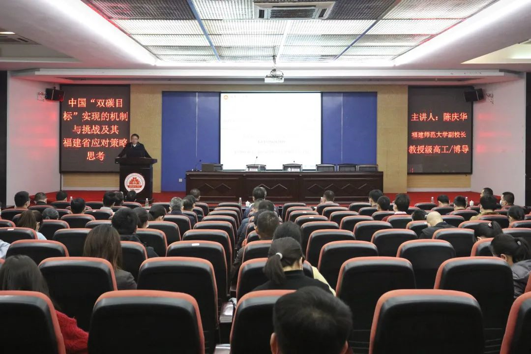在全国第44个植树节到来之际,3月11日上午,我校邀请福建师范大学副校长、碳中和研究院常务副院长、聚合物资绿色循环利用教育部工程研究中心主任陈庆华教授为我校师生作题为《中国“双碳目标”实现的机制与挑战及其福建省的应对策略思考——基于习近平生态文明思想》的专题讲座。